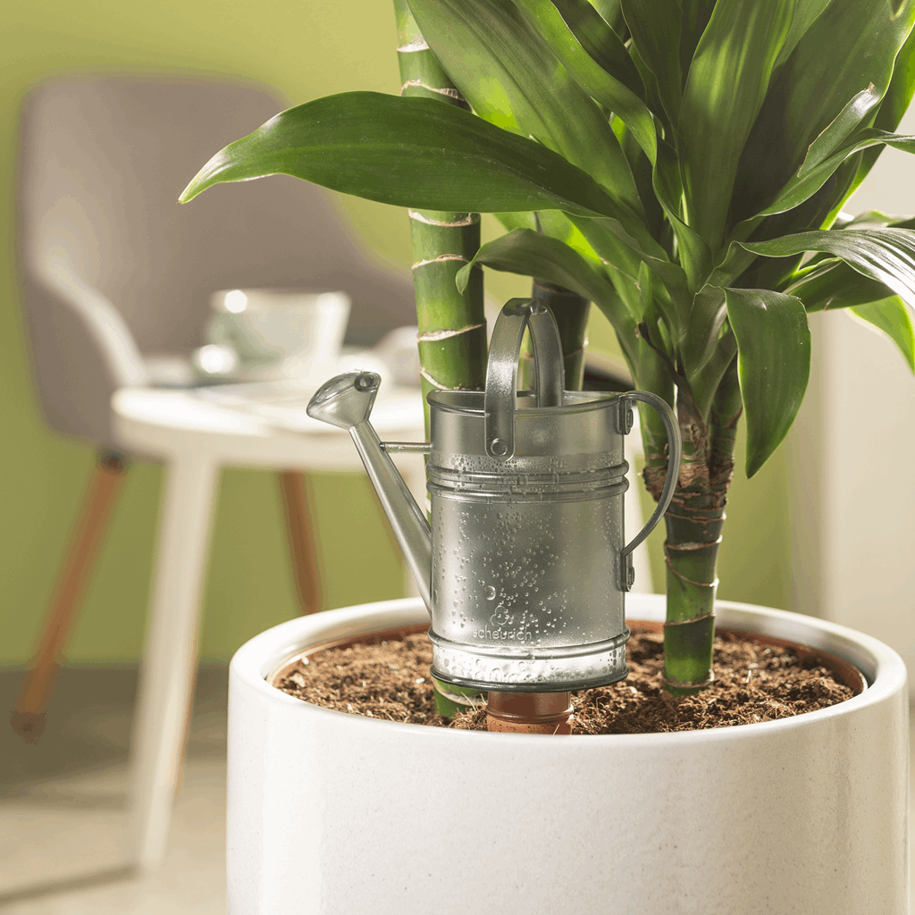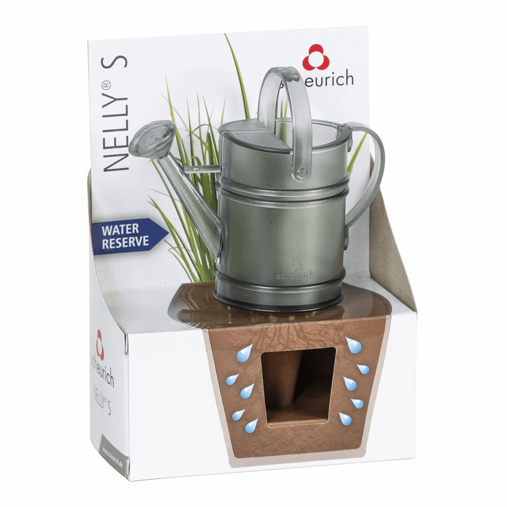 Nelly is a watering aid made of UV-resistant translucent plastic with a mini watering can design. As a water reservoir it supplies plants in your garden on your terrace and balcony as well as in the living area with water especially when youre not home. Depending on the size location and thirst of the plant it can supply water for up to 4 days.
