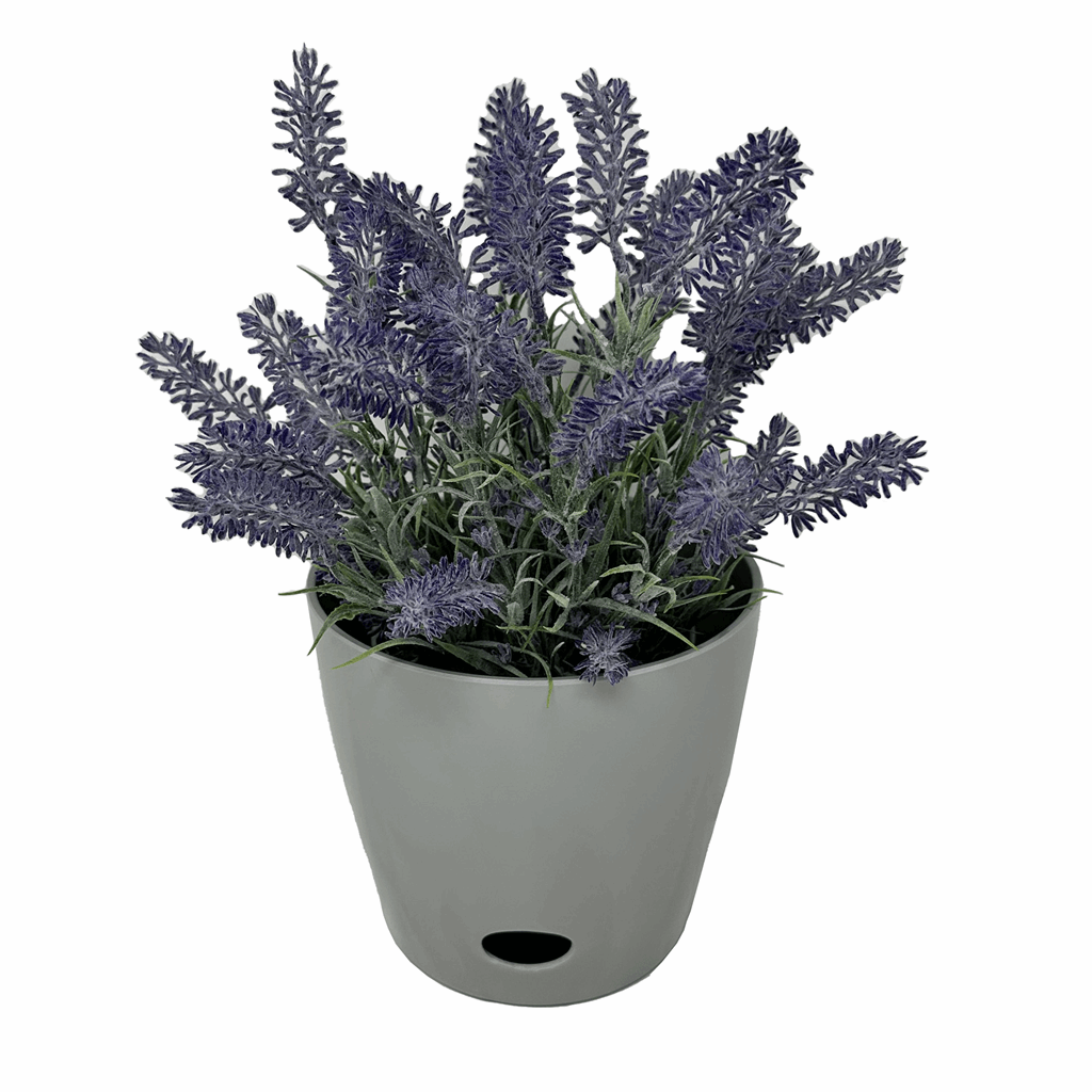 Worlds first Bamboo Fiber self-watering pot this 7″ Gray Solid Round self-watering pot is made from sustainable biodegradable all natural Bamboo Fiber and corn starch. Plants thrive in this natural Bamboo Fiber pot that is plastic free. The soil is better aerated by the unique water well in the base allowing better nutrient management helping the plants grow healthy and strong. These pots should be treated like ceramic suitable for use in hot or cold climates inside or outside. At initial planting water from the top until water is just below the overflow. Then periodically check the water level in the base and add water to the well from the bottom access or from the top of the pot. The soil draws water up from the well as needed using capillary action just like a wick. No more overwatering strong healthy plants is the result! Everyone gets a “green thumb” growing in bamboo pots and just by keeping water in the well! When you are finished with your pot just break it up and put into your compost bin. Over time the material will degrade back to nature.